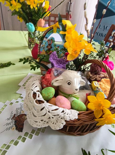 Wśród przygotowanych ozdób znalazły się ręcznie wykonane kompozycje z kolorowych włóczek, tkanin, wydmuszek i wiosennych kwiatów. Każdy element powstał z pasją i sercem. Serdecznie dziękujemy za tę inicjatywę. To małe dzieła sztuki, które wprowadzają ciepło i radość do wielkanocnych przygotowań.