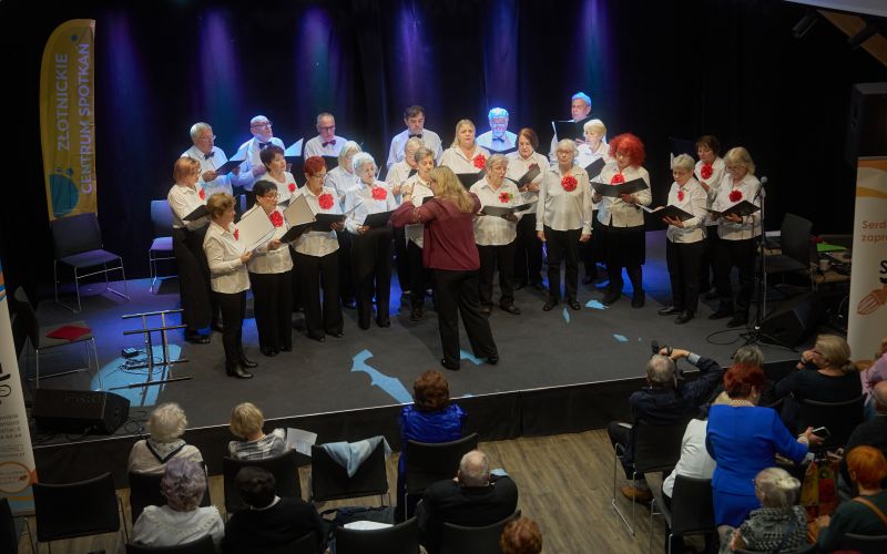 Złotnickie Centrum Spotkań wypełniło się muzyką, uśmiechami i wzruszeniem. Senioralne chóry zaprezentowały niezwykle różnorodny repertuar – od klasyki i folkloru, po współczesne aranżacje i energetyczne rytmy gospel. Każdy występ był dowodem na to, że wspólne śpiewanie daje ogromną radość i niesamowitą energię.