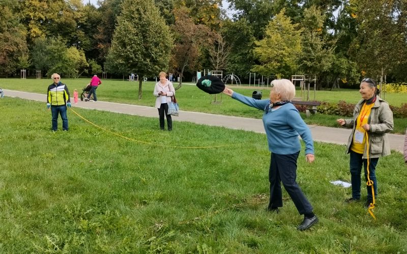 Na miejscu panowała radosna atmosfera – seniorzy chętnie brali udział w grach i zabawach rekreacyjno-sportowych, takich jak: